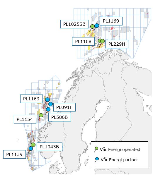 - Norskehavet: PL 1154 (op), PL 586B, PL 091F, PL 1163